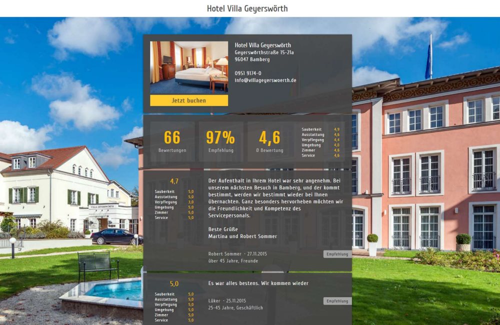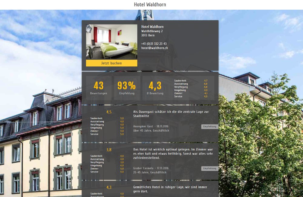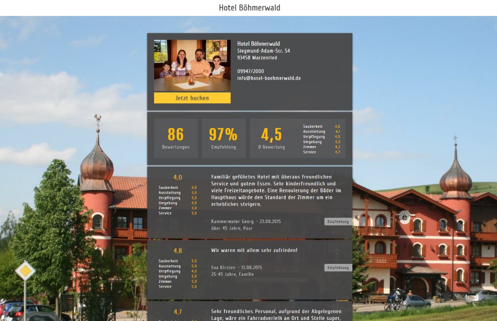 Mit Ihrem persönlichen Gütesiegel schaffen Sie Vertrauen und halten Besucher länger auf Ihrer Website. Mit nur einem Klick haben Ihre Gäste Zugriff auf Gästebewertungen und Kommentare.